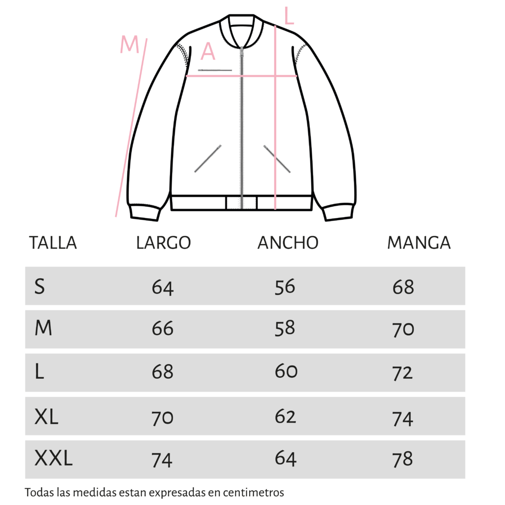 Manejamos tallas de la S a la XXL, con estas medidas para que puedas elegir el mejor fit para tu estilo.